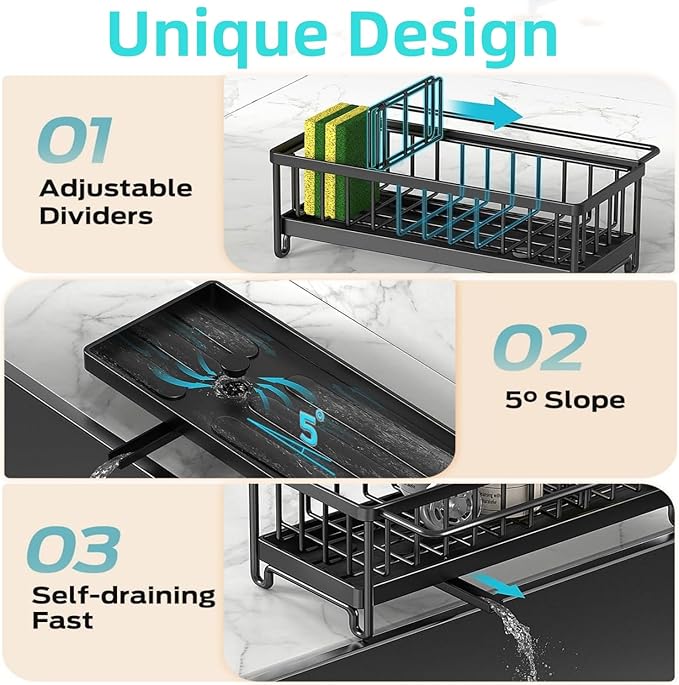 Mantén todo en su lugar y tu encimera siempre seca con nuestro organizador premium con bandeja de goteo automática. ¡Sin instalación, sin reguero, sin complicaciones!