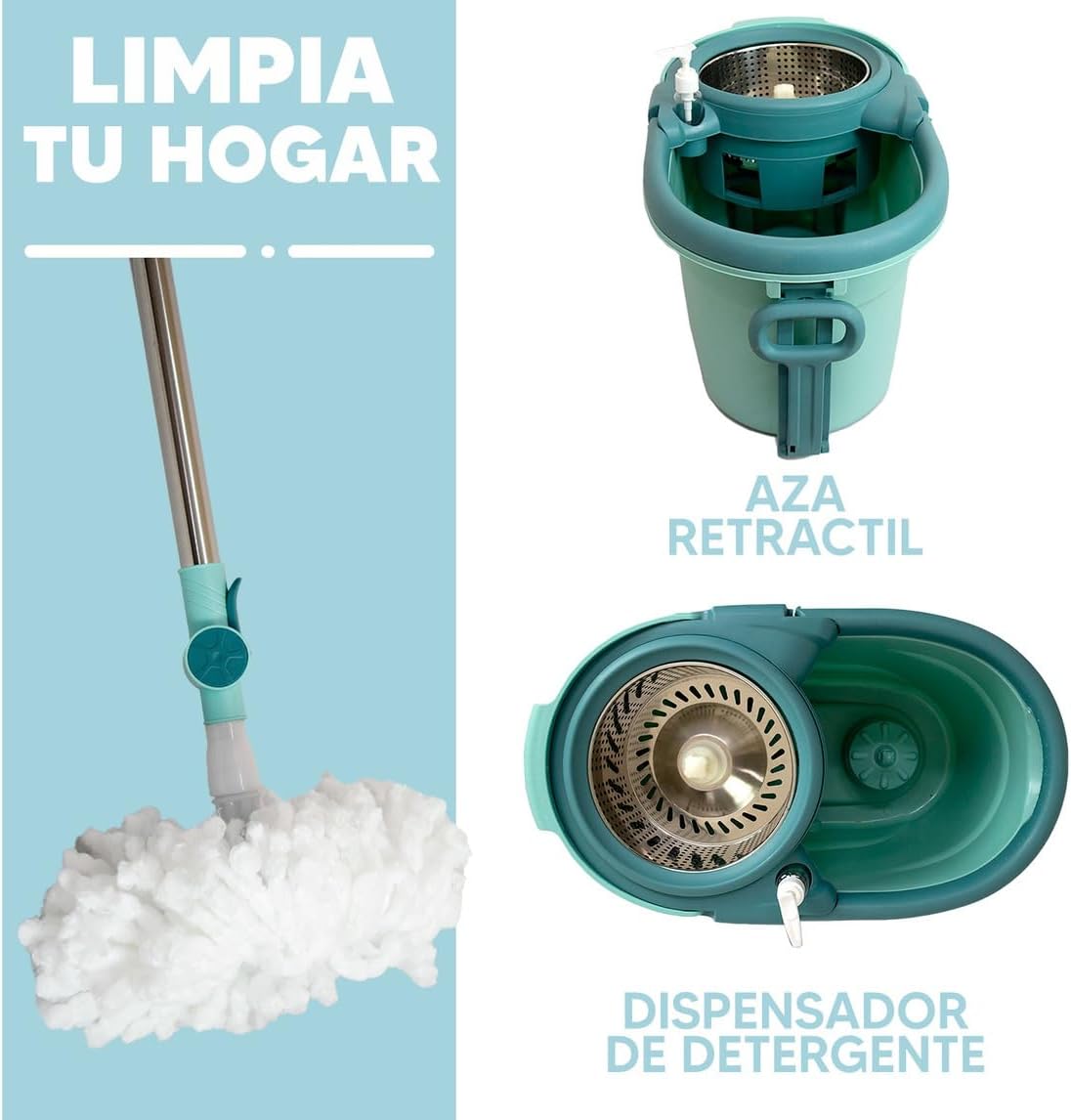 - Sistema de escurrido sin contacto, evitando ensuciarte las manos y ahorrándote esfuerzo.